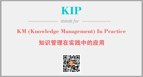 英文缩略词“KIP”经常作为“KM (Knowledge Management) In Practice”的英文缩写来使用,中文表示:“知识管理在实践中的应用”。本文将详细介绍英文缩写词KIP所代表英文单词,其对应的中文拼音、详细解释以及在英语中的流行度。此外,还有关于缩略词KIP的分类、应用领域及相关应用示例等。