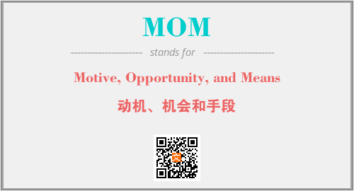 以上为Motive, Opportunity, and Means英文缩略词MOM的中文解释,以及该英文缩写在英语的流行度、分类和应用领域方面的信息。