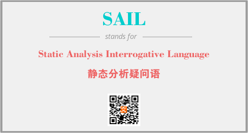 英文缩略词“SAIL”经常作为“Static Analysis Interrogative Language”的英文缩写来使用,中文表示:“静态分析疑问语”。本文将详细介绍英文缩写词SAIL所代表英文单词,其对应的中文拼音、详细解释以及在英语中的流行度。此外,还有关于缩略词SAIL的分类、应用领域及相关应用示例等。