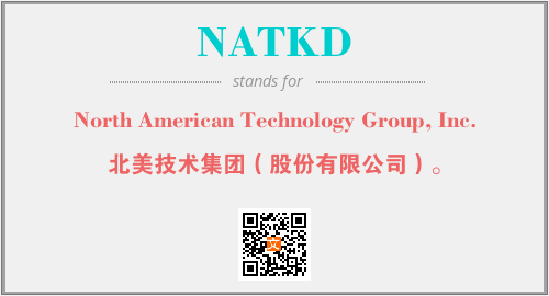 上述内容是“North American Technology Group, Inc.”作为“NATKD”的缩写,解释为“北美技术集团(股份有限公司)。”时的信息,以及英文缩略词NATKD所代表的英文单词,其对应的中文拼音、详细解释以及在英文中的流行度和相关分类、应用领域及应用示例等。
