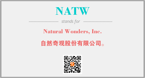上述内容是“Natural Wonders, Inc.”作为“NATW”的缩写,解释为“自然奇观股份有限公司。”时的信息,以及英文缩略词NATW所代表的英文单词,其对应的中文拼音、详细解释以及在英文中的流行度和相关分类、应用领域及应用示例等。