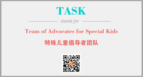 上述内容是“Team of Advocates for Special Kids”作为“TASK”的缩写,解释为“特殊儿童倡导者团队”时的信息,以及英文缩略词TASK所代表的英文单词,其对应的中文拼音、详细解释以及在英文中的流行度和相关分类、应用领域及应用示例等。