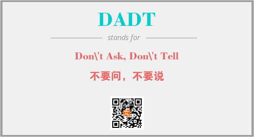 以上为Don\'t Ask, Don\'t Tell英文缩略词DADT的中文解释,以及该英文缩写在英语的流行度、分类和应用领域方面的信息。