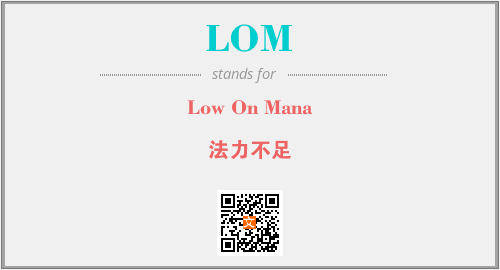 上述内容是“Low On Mana”作为“LOM”的缩写,解释为“法力不足”时的信息,以及英文缩略词LOM所代表的英文单词,其对应的中文拼音、详细解释以及在英文中的流行度和相关分类、应用领域及应用示例等。