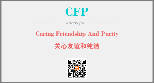 以上为Caring Friendship And Purity英文缩略词CFP的中文解释,以及该英文缩写在英语的流行度、分类和应用领域方面的信息。