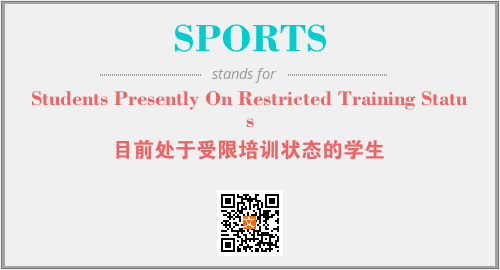 以上为Students Presently On Restricted Training Status英文缩略词SPORTS的中文解释,以及该英文缩写在英语的流行度、分类和应用领域方面的信息。