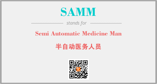 上述内容是“Semi Automatic Medicine Man”作为“SAMM”的缩写,解释为“半自动医务人员”时的信息,以及英文缩略词SAMM所代表的英文单词,其对应的中文拼音、详细解释以及在英文中的流行度和相关分类、应用领域及应用示例等。