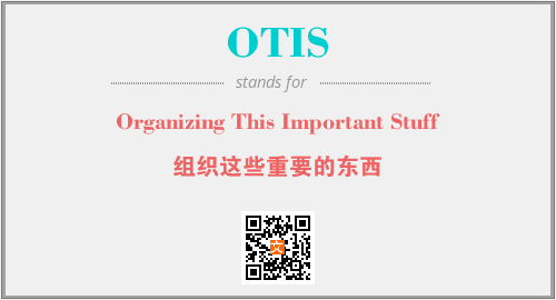 以上为Organizing This Important Stuff英文缩略词OTIS的中文解释,以及该英文缩写在英语的流行度、分类和应用领域方面的信息。