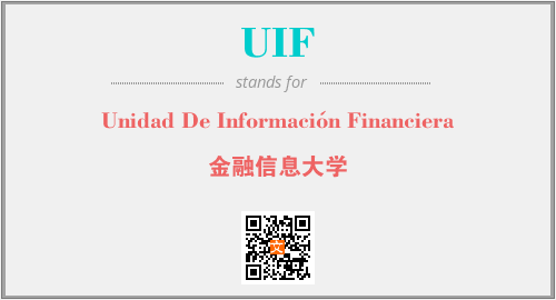 上述内容是“Unidad De Información Financiera”作为“UIF”的缩写,解释为“金融信息大学”时的信息,以及英文缩略词UIF所代表的英文单词,其对应的中文拼音、详细解释以及在英文中的流行度和相关分类、应用领域及应用示例等。