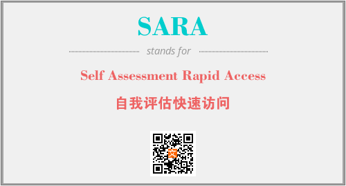 上述内容是“Self Assessment Rapid Access”作为“SARA”的缩写,解释为“自我评估快速访问”时的信息,以及英文缩略词SARA所代表的英文单词,其对应的中文拼音、详细解释以及在英文中的流行度和相关分类、应用领域及应用示例等。