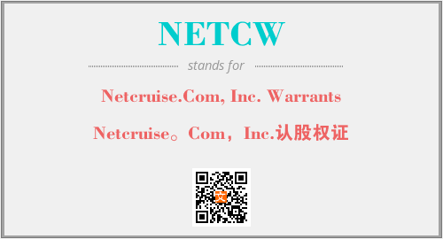 上述内容是“Netcruise.Com, Inc. Warrants”作为“NETCW”的缩写,解释为“Netcruise。Com,Inc.认股权证”时的信息,以及英文缩略词NETCW所代表的英文单词,其对应的中文拼音、详细解释以及在英文中的流行度和相关分类、应用领域及应用示例等。