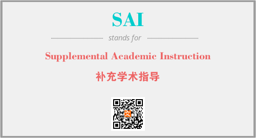 英文缩略词“SAI”经常作为“Supplemental Academic Instruction”的英文缩写来使用,中文表示:“补充学术指导”。本文将详细介绍英文缩写词SAI所代表英文单词,其对应的中文拼音、详细解释以及在英语中的流行度。此外,还有关于缩略词SAI的分类、应用领域及相关应用示例等。