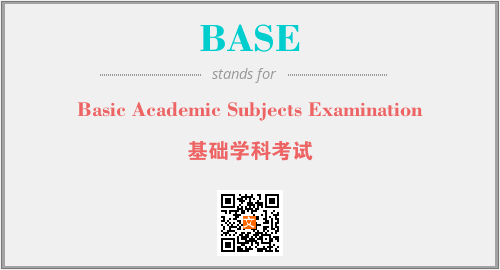 英文缩略词“BASE”经常作为“Basic Academic Subjects Examination”的英文缩写来使用,中文表示:“基础学科考试”。本文将详细介绍英文缩写词BASE所代表英文单词,其对应的中文拼音、详细解释以及在英语中的流行度。此外,还有关于缩略词BASE的分类、应用领域及相关应用示例等。