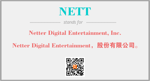 上述内容是“Netter Digital Entertainment, Inc.”作为“NETT”的缩写,解释为“Netter Digital Entertainment,股份有限公司。”时的信息,以及英文缩略词NETT所代表的英文单词,其对应的中文拼音、详细解释以及在英文中的流行度和相关分类、应用领域及应用示例等。