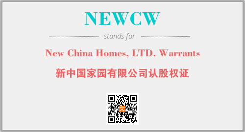 上述内容是“New China Homes, LTD. Warrants”作为“NEWCW”的缩写,解释为“新中国家园有限公司认股权证”时的信息,以及英文缩略词NEWCW所代表的英文单词,其对应的中文拼音、详细解释以及在英文中的流行度和相关分类、应用领域及应用示例等。