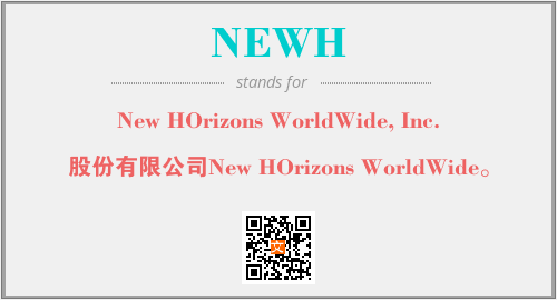 上述内容是“New HOrizons WorldWide, Inc.”作为“NEWH”的缩写,解释为“股份有限公司New HOrizons WorldWide。”时的信息,以及英文缩略词NEWH所代表的英文单词,其对应的中文拼音、详细解释以及在英文中的流行度和相关分类、应用领域及应用示例等。