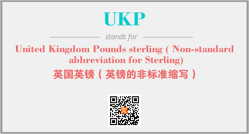 英文缩略词“UKP”经常作为“United Kingdom Pounds sterling ( Non-standard abbreviation for Sterling)”的英文缩写来使用,中文表示:“英国英镑(英镑的非标准缩写)”。本文将详细介绍英文缩写词UKP所代表英文单词,其对应的中文拼音、详细解释以及在英语中的流行度。此外,还有关于缩略词UKP的分类、应用领域及相关应用示例等。