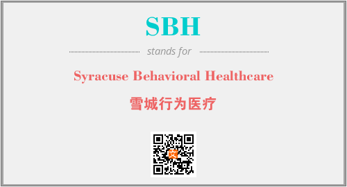 上述内容是“Syracuse Behavioral Healthcare”作为“SBH”的缩写,解释为“雪城行为医疗”时的信息,以及英文缩略词SBH所代表的英文单词,其对应的中文拼音、详细解释以及在英文中的流行度和相关分类、应用领域及应用示例等。