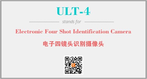 上述内容是“Electronic Four Shot Identification Camera”作为“ULT-4”的缩写,解释为“电子四镜头识别摄像头”时的信息,以及英文缩略词ULT-4所代表的英文单词,其对应的中文拼音、详细解释以及在英文中的流行度和相关分类、应用领域及应用示例等。