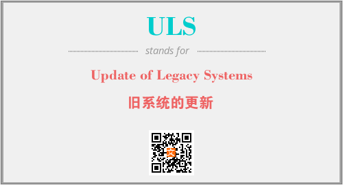 上述内容是“Update of Legacy Systems”作为“ULS”的缩写,解释为“旧系统的更新”时的信息,以及英文缩略词ULS所代表的英文单词,其对应的中文拼音、详细解释以及在英文中的流行度和相关分类、应用领域及应用示例等。