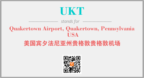 上述内容是“Quakertown Airport, Quakertown, Pennsylvania USA”作为“UKT”的缩写,解释为“美国宾夕法尼亚州贵格敦贵格敦机场”时的信息,以及英文缩略词UKT所代表的英文单词,其对应的中文拼音、详细解释以及在英文中的流行度和相关分类、应用领域及应用示例等。