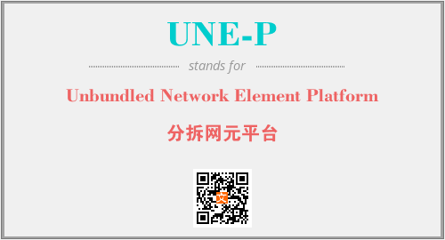 英文缩略词“UNE-P”经常作为“Unbundled Network Element Platform”的英文缩写来使用,中文表示:“分拆网元平台”。本文将详细介绍英文缩写词UNE-P所代表英文单词,其对应的中文拼音、详细解释以及在英语中的流行度。此外,还有关于缩略词UNE-P的分类、应用领域及相关应用示例等。
