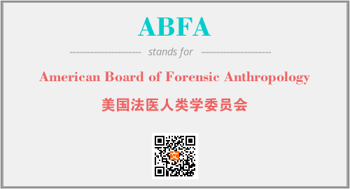 上述内容是“American Board of Forensic Anthropology”作为“ABFA”的缩写,解释为“美国法医人类学委员会”时的信息,以及英文缩略词ABFA所代表的英文单词,其对应的中文拼音、详细解释以及在英文中的流行度和相关分类、应用领域及应用示例等。