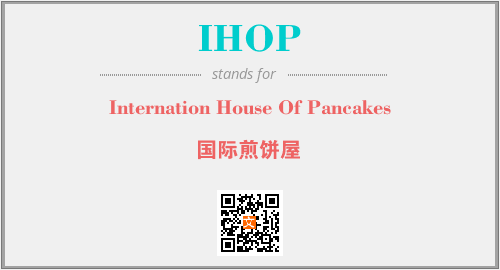 以上为Internation House Of Pancakes英文缩略词IHOP的中文解释,以及该英文缩写在英语的流行度、分类和应用领域方面的信息。