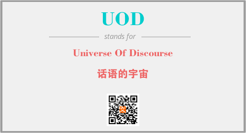 英文缩略词“UOD”经常作为“Universe Of Discourse”的英文缩写来使用,中文表示:“话语的宇宙”。本文将详细介绍英文缩写词UOD所代表英文单词,其对应的中文拼音、详细解释以及在英语中的流行度。此外,还有关于缩略词UOD的分类、应用领域及相关应用示例等。