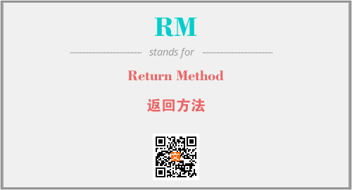 英文缩略词“RM”经常作为“Return Method”的英文缩写来使用,中文表示:“返回方法”。本文将详细介绍英文缩写词RM所代表英文单词,其对应的中文拼音、详细解释以及在英语中的流行度。此外,还有关于缩略词RM的分类、应用领域及相关应用示例等。