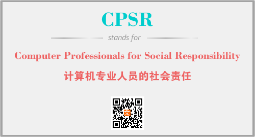 上述内容是“Computer Professionals for Social Responsibility”作为“CPSR”的缩写,解释为“计算机专业人员的社会责任”时的信息,以及英文缩略词CPSR所代表的英文单词,其对应的中文拼音、详细解释以及在英文中的流行度和相关分类、应用领域及应用示例等。