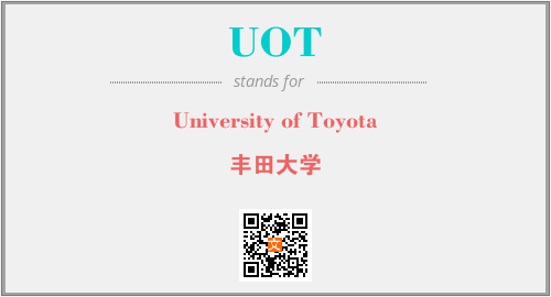 英文缩略词“UOT”经常作为“University of Toyota”的英文缩写来使用,中文表示:“丰田大学”。本文将详细介绍英文缩写词UOT所代表英文单词,其对应的中文拼音、详细解释以及在英语中的流行度。此外,还有关于缩略词UOT的分类、应用领域及相关应用示例等。