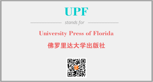 英文缩略词“UPF”经常作为“University Press of Florida”的英文缩写来使用,中文表示:“佛罗里达大学出版社”。本文将详细介绍英文缩写词UPF所代表英文单词,其对应的中文拼音、详细解释以及在英语中的流行度。此外,还有关于缩略词UPF的分类、应用领域及相关应用示例等。