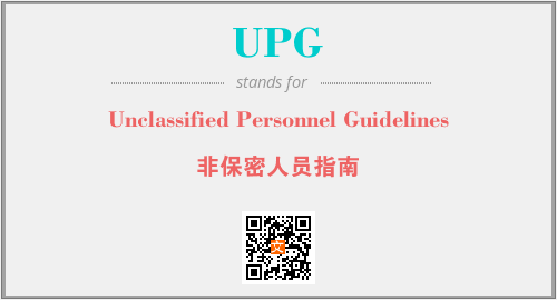 英文缩略词“UPG”经常作为“Unclassified Personnel Guidelines”的英文缩写来使用,中文表示:“非保密人员指南”。本文将详细介绍英文缩写词UPG所代表英文单词,其对应的中文拼音、详细解释以及在英语中的流行度。此外,还有关于缩略词UPG的分类、应用领域及相关应用示例等。