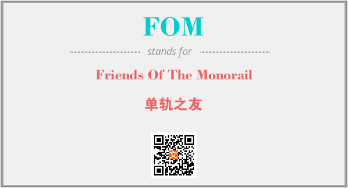上述内容是“Friends Of The Monorail”作为“FOM”的缩写,解释为“单轨之友”时的信息,以及英文缩略词FOM所代表的英文单词,其对应的中文拼音、详细解释以及在英文中的流行度和相关分类、应用领域及应用示例等。