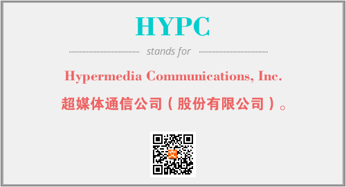 上述内容是“Hypermedia Communications, Inc.”作为“HYPC”的缩写,解释为“超媒体通信公司(股份有限公司)。”时的信息,以及英文缩略词HYPC所代表的英文单词,其对应的中文拼音、详细解释以及在英文中的流行度和相关分类、应用领域及应用示例等。