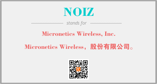 上述内容是“Micronetics Wireless, Inc.”作为“NOIZ”的缩写,解释为“Micronetics Wireless,股份有限公司。”时的信息,以及英文缩略词NOIZ所代表的英文单词,其对应的中文拼音、详细解释以及在英文中的流行度和相关分类、应用领域及应用示例等。