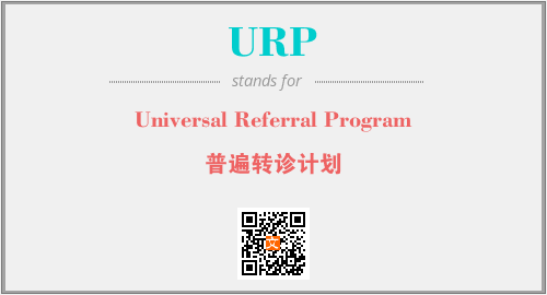 上述内容是“Universal Referral Program”作为“URP”的缩写,解释为“普遍转诊计划”时的信息,以及英文缩略词URP所代表的英文单词,其对应的中文拼音、详细解释以及在英文中的流行度和相关分类、应用领域及应用示例等。