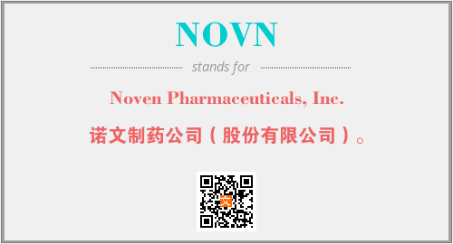 上述内容是“Noven Pharmaceuticals, Inc.”作为“NOVN”的缩写,解释为“诺文制药公司(股份有限公司)。”时的信息,以及英文缩略词NOVN所代表的英文单词,其对应的中文拼音、详细解释以及在英文中的流行度和相关分类、应用领域及应用示例等。