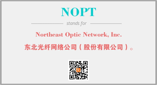 上述内容是“Northeast Optic Network, Inc.”作为“NOPT”的缩写,解释为“东北光纤网络公司(股份有限公司)。”时的信息,以及英文缩略词NOPT所代表的英文单词,其对应的中文拼音、详细解释以及在英文中的流行度和相关分类、应用领域及应用示例等。