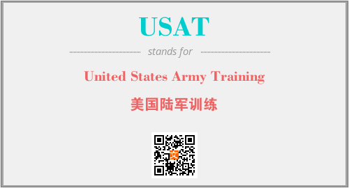 英文缩略词“USAT”经常作为“United States Army Training”的英文缩写来使用,中文表示:“美国陆军训练”。本文将详细介绍英文缩写词USAT所代表英文单词,其对应的中文拼音、详细解释以及在英语中的流行度。此外,还有关于缩略词USAT的分类、应用领域及相关应用示例等。