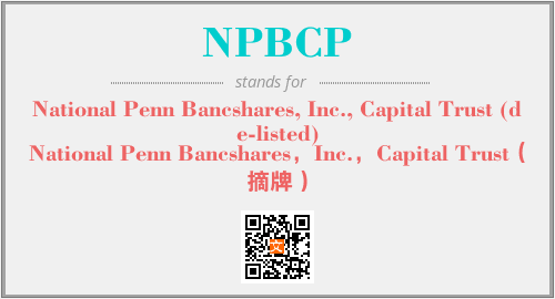 上述内容是“National Penn Bancshares, Inc., Capital Trust (de-listed)”作为“NPBCP”的缩写,解释为“National Penn Bancshares,Inc.,Capital Trust(摘牌)”时的信息,以及英文缩略词NPBCP所代表的英文单词,其对应的中文拼音、详细解释以及在英文中的流行度和相关分类、应用领域及应用示例等。