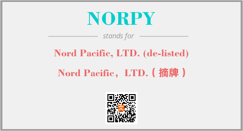 上述内容是“Nord Pacific, LTD. (de-listed)”作为“NORPY”的缩写,解释为“Nord Pacific,LTD.(摘牌)”时的信息,以及英文缩略词NORPY所代表的英文单词,其对应的中文拼音、详细解释以及在英文中的流行度和相关分类、应用领域及应用示例等。
