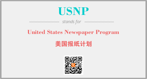 英文缩略词“USNP”经常作为“United States Newspaper Program”的英文缩写来使用,中文表示:“美国报纸计划”。本文将详细介绍英文缩写词USNP所代表英文单词,其对应的中文拼音、详细解释以及在英语中的流行度。此外,还有关于缩略词USNP的分类、应用领域及相关应用示例等。