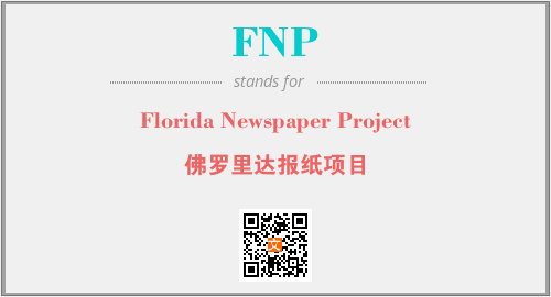 上述内容是“Florida Newspaper Project”作为“FNP”的缩写,解释为“佛罗里达报纸项目”时的信息,以及英文缩略词FNP所代表的英文单词,其对应的中文拼音、详细解释以及在英文中的流行度和相关分类、应用领域及应用示例等。