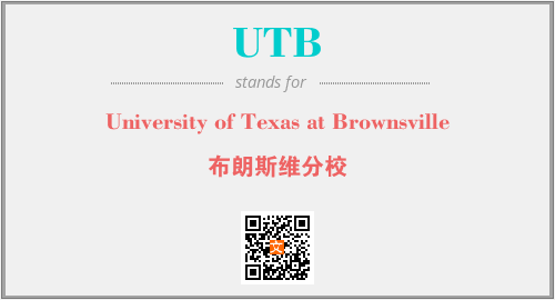 英文缩略词“UTB”经常作为“University of Texas at Brownsville”的英文缩写来使用,中文表示:“布朗斯维分校”。本文将详细介绍英文缩写词UTB所代表英文单词,其对应的中文拼音、详细解释以及在英语中的流行度。此外,还有关于缩略词UTB的分类、应用领域及相关应用示例等。