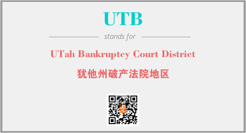 英文缩略词“UTB”经常作为“UTah Bankruptcy Court District”的英文缩写来使用,中文表示:“犹他州破产法院地区”。本文将详细介绍英文缩写词UTB所代表英文单词,其对应的中文拼音、详细解释以及在英语中的流行度。此外,还有关于缩略词UTB的分类、应用领域及相关应用示例等。