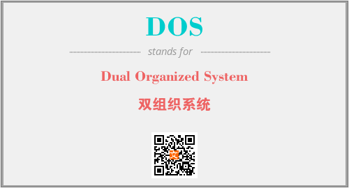 上述内容是“Dual Organized System”作为“DOS”的缩写,解释为“双组织系统”时的信息,以及英文缩略词DOS所代表的英文单词,其对应的中文拼音、详细解释以及在英文中的流行度和相关分类、应用领域及应用示例等。