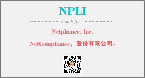 上述内容是“Netpliance, Inc.”作为“NPLI”的缩写,解释为“NetCompliance,股份有限公司。”时的信息,以及英文缩略词NPLI所代表的英文单词,其对应的中文拼音、详细解释以及在英文中的流行度和相关分类、应用领域及应用示例等。