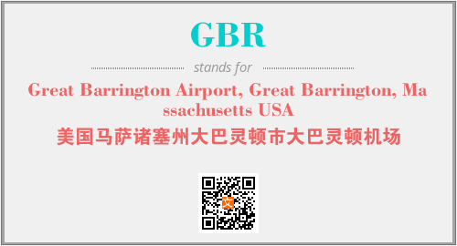 上述内容是“Great Barrington Airport, Great Barrington, Massachusetts USA”作为“GBR”的缩写,解释为“美国马萨诸塞州大巴灵顿市大巴灵顿机场”时的信息,以及英文缩略词GBR所代表的英文单词,其对应的中文拼音、详细解释以及在英文中的流行度和相关分类、应用领域及应用示例等。